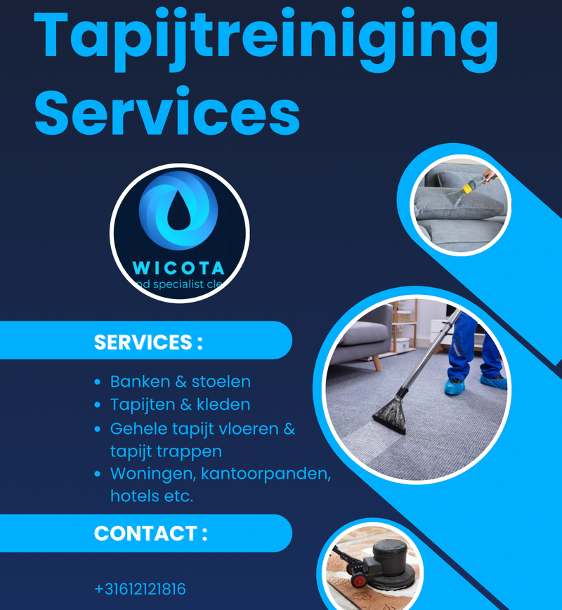 Bij Wicota Allround Specialist Cleaning weten we hoe belangrijk schone tapijten zijn voor een gezonde en uitnodigende leef- en werkomgeving. Ons team van ervaren specialisten staat klaar om uw tapijten en meubels de zorg en aandacht te geven die ze verdienen.